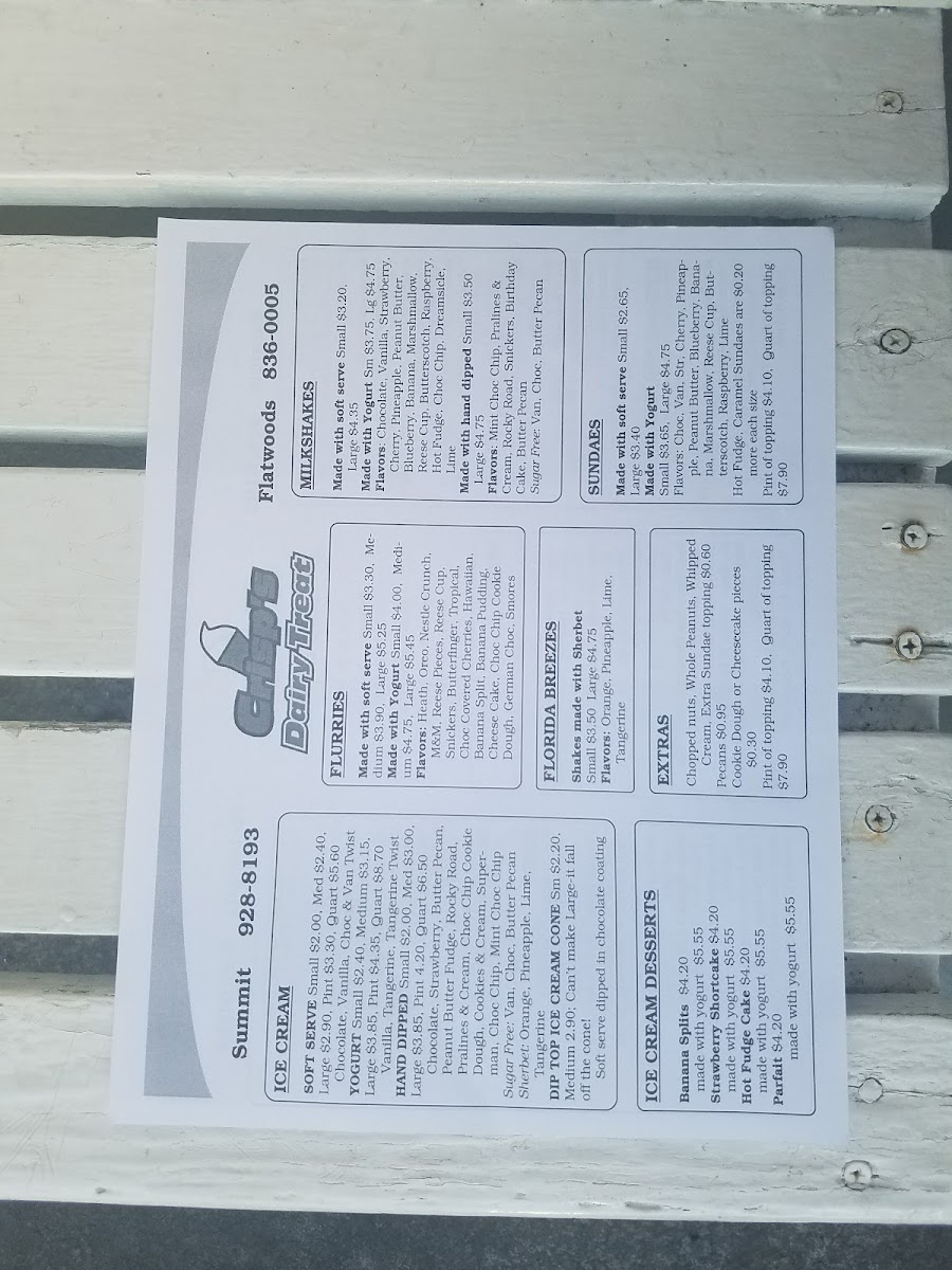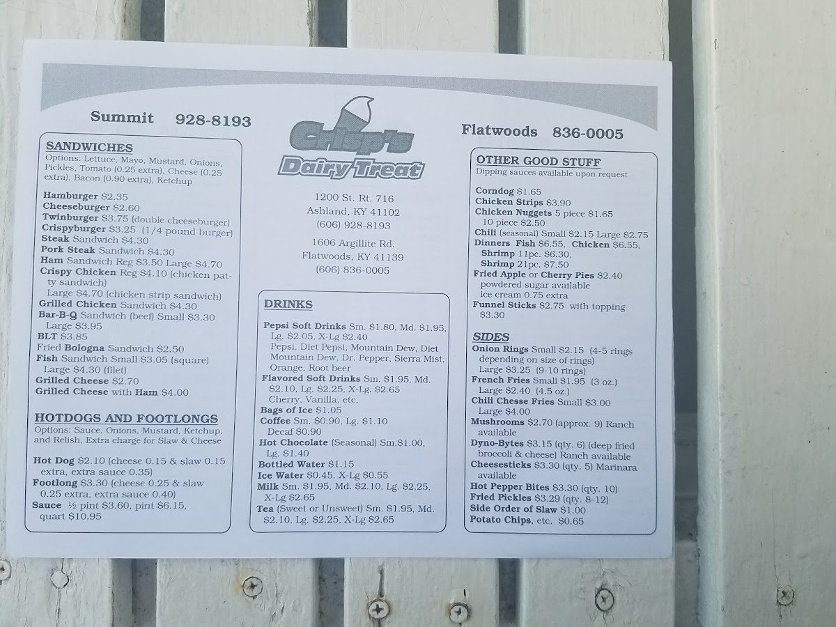 Crisp's Dairy Treat Menu